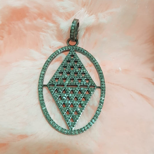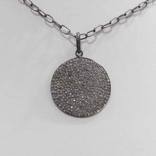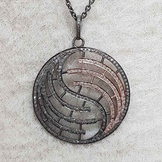 Round Designer Pave Diamond Fancy Pendant, Unique Style Fancy Necklace, Silver Jewelry