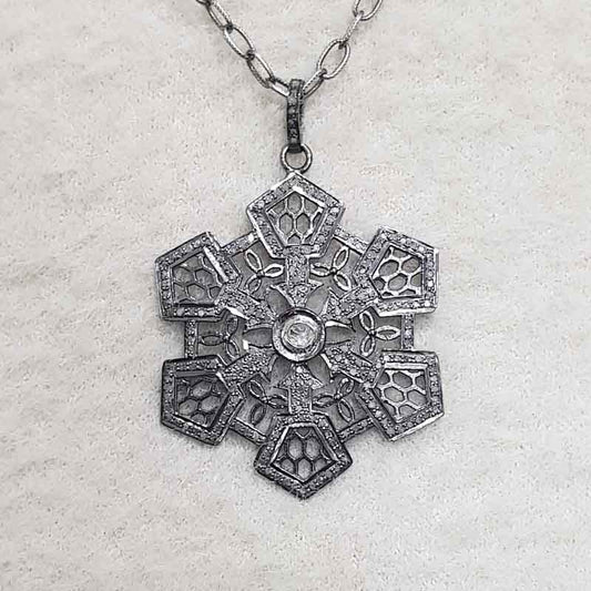 Natural Pave Diamond Handmade 925 Sterling Silver Flower style Pendant, Silver Jewelry