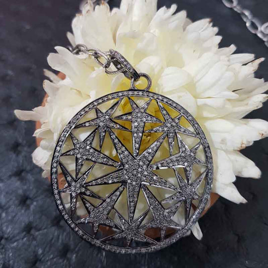 Round Designer Natural Pave Diamond Star Pendant, Stunning Round Design Shape Necklace