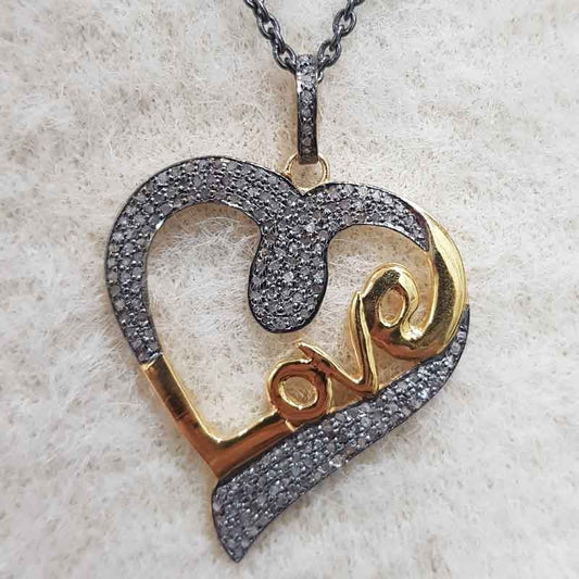 Matte Finish Designer Pave Diamond Two Tone Heart Pendant, Gift For Mom, Silver Jewelry