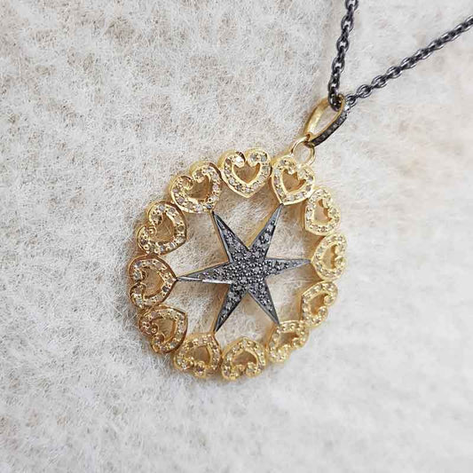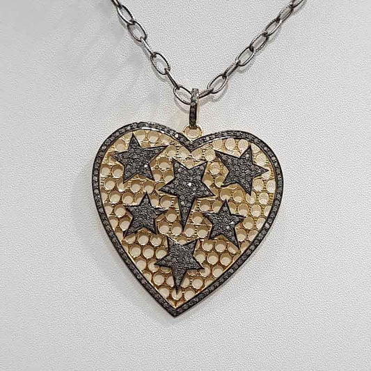 Yellow & Black Small Star on Heart Pendant With Pave Diamond, Attractive Heart Pendant, Gift For Lover