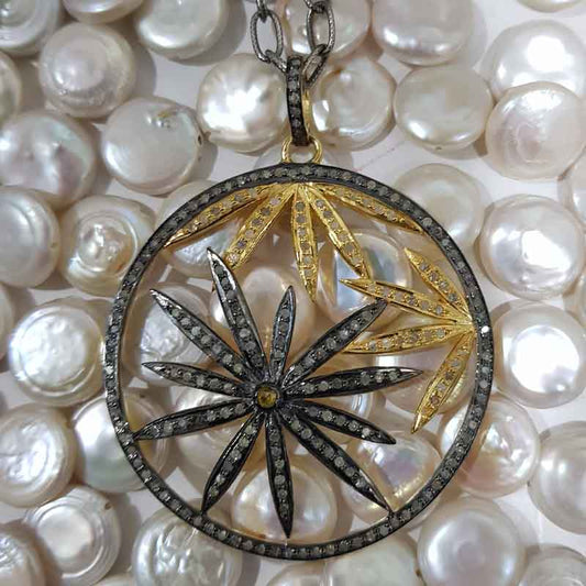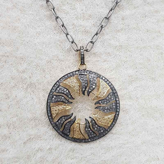 Yellow And Black Stunning Round Starburst Pave Diamond Pendant, Shiny And Bright Sunburst, Gift For Love