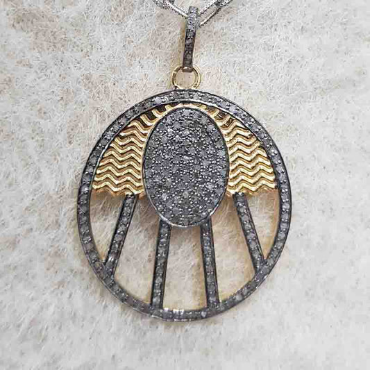 Yellow And Black Handmade Style Pave Diamond Fancy Designer Pendant, Shiny Fancy Necklace