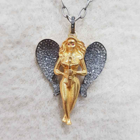 Yellow Polish Designer Pave Diamond Mother God Angle Style Pendant, Unique Gift, Gift For Someone,