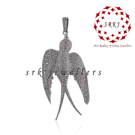 Fancy Pave Diamond Bird Pendant, Silver Bird Pendant