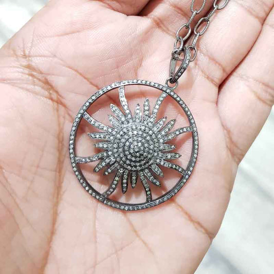 Silver Sunburst Pendant Diamond Starburst Pendant