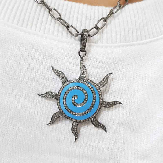 925 Sterling Silver Pendant Round Sunburst Pendant